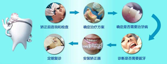 2、矫正,医生根据模型,照片和X线片,经过测量,计算,诊断错合类型,并且制定出一个详细的治疗方案。然后医生向患者及患者家属解释治疗方案,征求患者及家属的意见。治疗方案确定后,患者或患者家属在同意书上签字;牙科医师开始对患者进行牙齿矫正操作;牙齿矫正治疗结束后去除矫治器,戴上保持器。