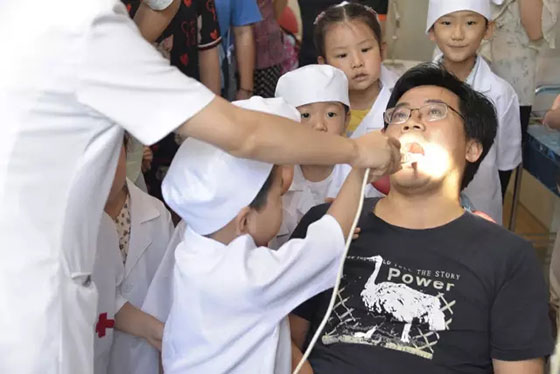 活动流程NO.1、换好小牙医服装、准备上岗;NO.2、院内环境参观、了解医生工作状态;牙椅观摩、操作;NO.3、免费儿童口腔检查;NO.4、“小牙医”帮父母口腔检查;NO.5、儿童爱牙护齿保健讲堂;NO.6、正确刷牙姿势教程;-------------------------------------------------------------------------------------------------------------------