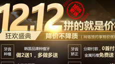 11.11已经过去,12.12还可以继续狂欢。康贝佳口腔特推出了双12美牙钜惠拼的就是价格活动。凡网络预约在12月12日当天做牙齿种植、牙齿美容等项目,均可享受康贝佳美牙狂欢盛典。团购洗牙、……【详细】