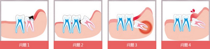 1、蛀牙:如果智齿蛀牙,除了很简单的咬合面不深的蛀牙可以补之外,那些邻接面蛀牙,需要很好的技术,以及蛀得很深,甚至需要根管治疗的,我们一律建议拔除,防止后患。